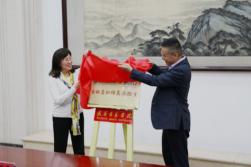 2017年10月11日,我校与深圳国泰安教育技术股份有限公司共建的“金融虚拟仿真实验室”揭牌仪式隆重举行。校长周进与深圳国泰安教育技术股份有限公司总裁左敏代表双方签订校企战略合作协议,并为实验室揭牌。