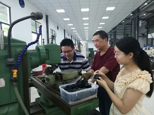 为不影响教学,又能长久解决实验台的配件问题,由机电学院实验与实训中心主任梅秋燕牵头组织,卢小海等实验员设计具体实施方案,自行购买原料、自行配置生产,利用学校工程实训中心的现有设备资源,通过铣、削加工等程序自制了实验台底板等易损易耗件,每套制作成本价格仅为原厂定制配件价格的十分之一,这一自制生产方案为学校节约了2万余元的耗材支出,并通过实际运用反馈,效果良好且稳定度高不易损坏。