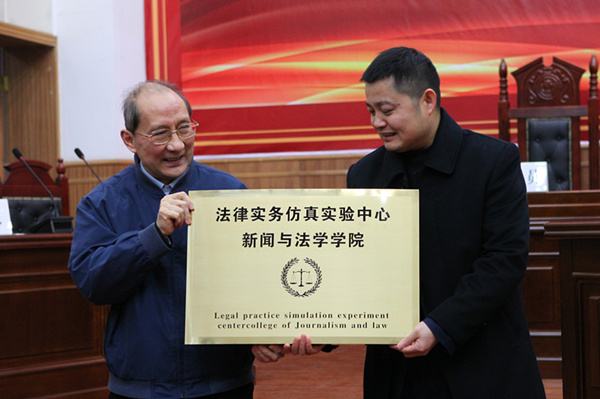 冯向东为法律实务仿真实验中心授牌,郑传洋接牌。