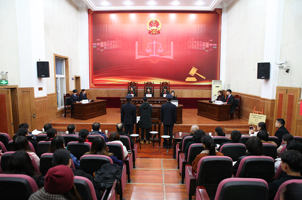 12月5日上午,法律实务仿真实验中心授牌仪式暨模拟审案演示活动举行。原湖北省高级人民法院刑事审判庭高级法官李成桂,武汉市洪山区检察院检察官甘红,优秀校友、北京盈科律师事务所律师魏巧灵,校党委书记冯向东,副校长兼新闻与法学学院院长石长顺,副校长金国杰,设备处处长罗有良、副处长李庆,教务处副处长周自伦,新闻与法学学院副院长余林、党总支副书记吴世杰、实验与实训中心主任郑传洋出席活动。法学专业教师、2017级全体学生参加。仪式由文法系系主任陈永蓉主持。