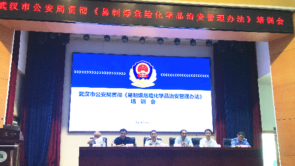 2019年9月11日上午9时,武汉市公安局治安管理局在湖北大学举办《易制爆危险化学品治安管理办法》(公安部154号)培训会。市公安局、教育局等相关领导及各高等院校代表245人参会。