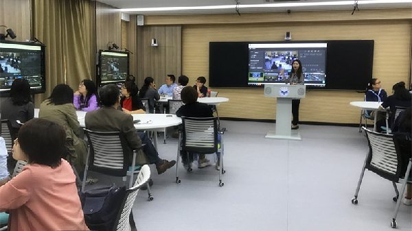 一键开机、多屏显示、高清录播、无线投屏、自由摆放桌椅……10月10日在我校行政楼七楼开展智慧教学空间的使用培训会议。培训当天三十多名老师体验全新的教学环境,告别“粉笔+黑板+PPT”的传统教学方式。