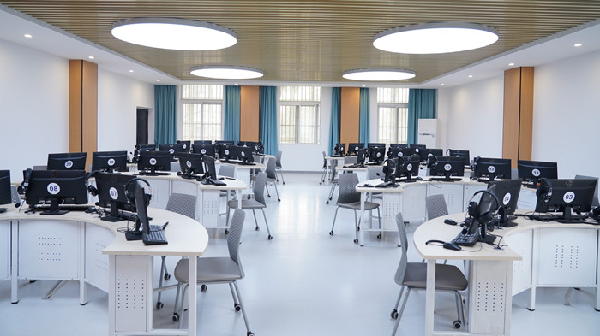 通过前期严谨细致的调研论证,实验室建设方案在2021年3月开始组织实施,利用暑期完成场地装修以及家具、设备的到货安装。外国语学院“语言实验室“、“翻译实训室”、“人机共译实验室”于2021年9月18日顺利投入教学使用。