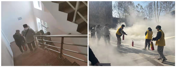 本次演练分为机电实验大楼内紧急疏散和室外灭火器实操演练两个部分。全程演练组织有序,指挥人员沉着冷静,参演师生反应迅速。