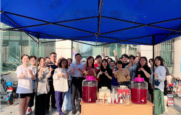 6月14日下午,城市建设学院生物工程专业学生用他们的专业知识在学校西区食堂旁边撑起了一个意义非凡的展台。教育需要使学生具有强烈的现实感、生活感。作为一场深度体验式的文化活动,生物专业自酿葡萄酒展台,为烈日炎炎的夏日校园注入一股清新。