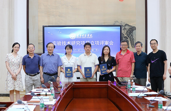 评审会结束前,吴校长为今年5月份顺利结题的三位实验技术研究项目负责人颁发结题证书并合影。