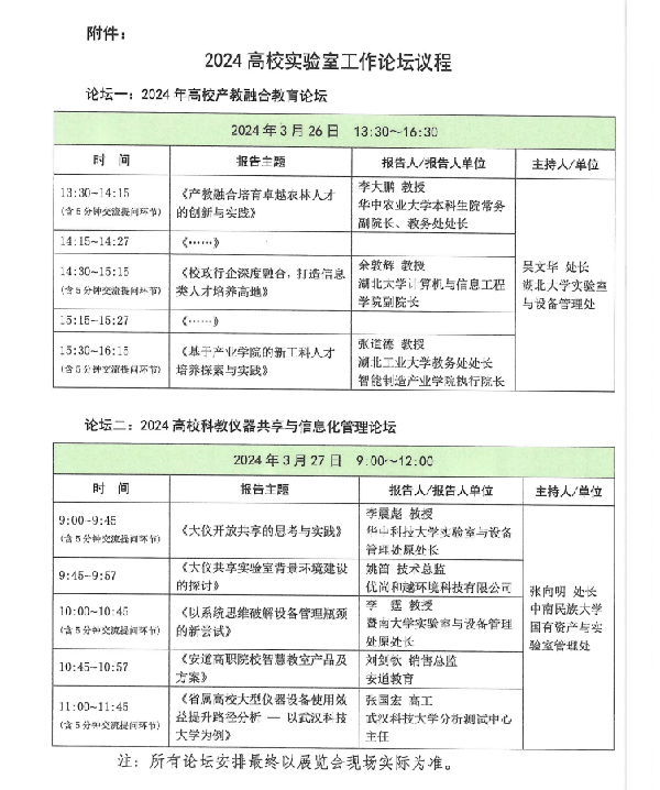 2024第十二届华中科教仪器与技术装备展览会于2024年3月26日-28日在武汉中国光谷科技会展中心(高新大道787号)举办。展会期间,将同步开展以科教仪器共享、产教融合为专题的高校实验室工作论坛。